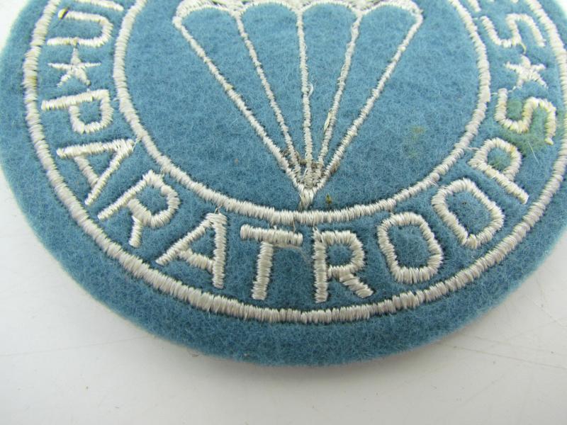 This is a good exampler of a period made United States army airborne infantry pocket patch. These patches could be private purchase from the local PX stores. in a very good condition