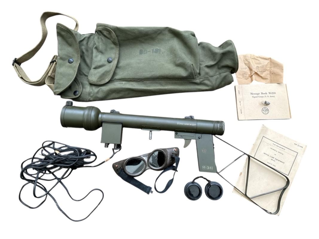 This is a complete WW2 issue M-227 signal lamp kit, without power source. This is a battery powered signaling lamp as issued to Airborne units for communication ground to ground, or ground to air