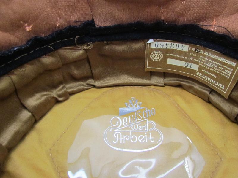 The underside of the sweatband reveals an intact Reichszeugmeisterei (RZM) label bearing a secondary code of “403460”, as well as an illegible manufacturer’s code