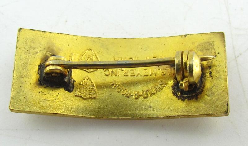 Early WWII pin back. It is hallmarked with the NS Meyer Inc shield and "Shold-R-Form".