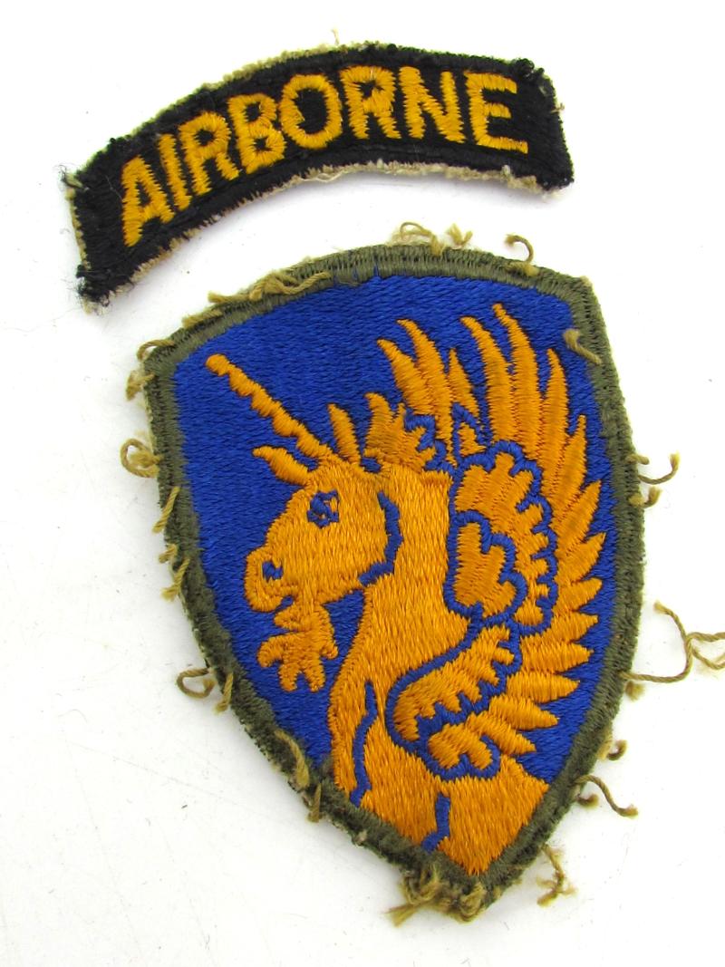 a US WW2 13th Airborne Division Shoulder Sleeve Insignia. The 13th Airborne Division nicknamed "Golden Unicorns" took part in the following campaigns: European Theater of Operations