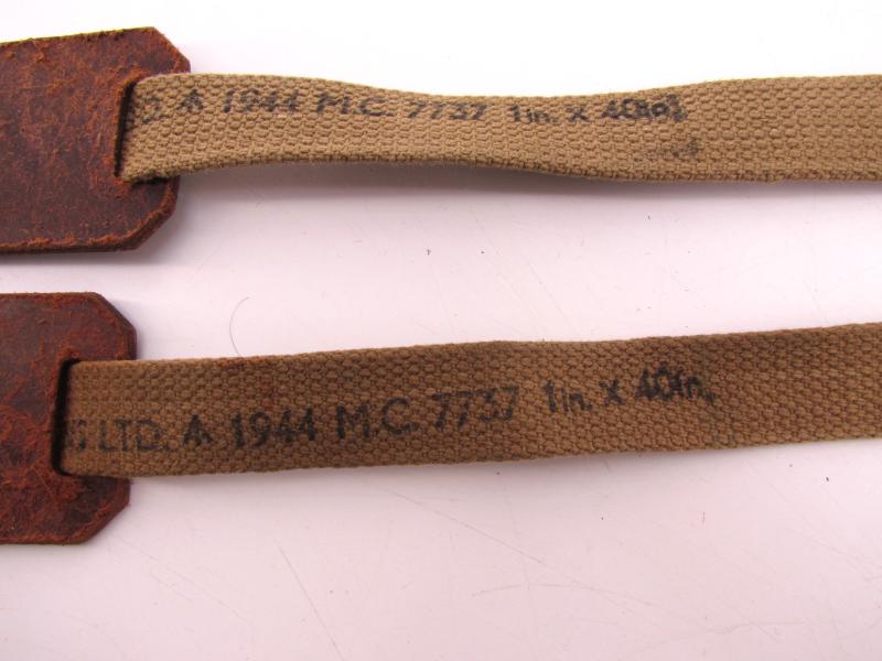 WW2 37 ptn utility webbing straps and buckles in unissued condition. The straps are both dated 1944 with the war department arrow . Length about 92,5 cm