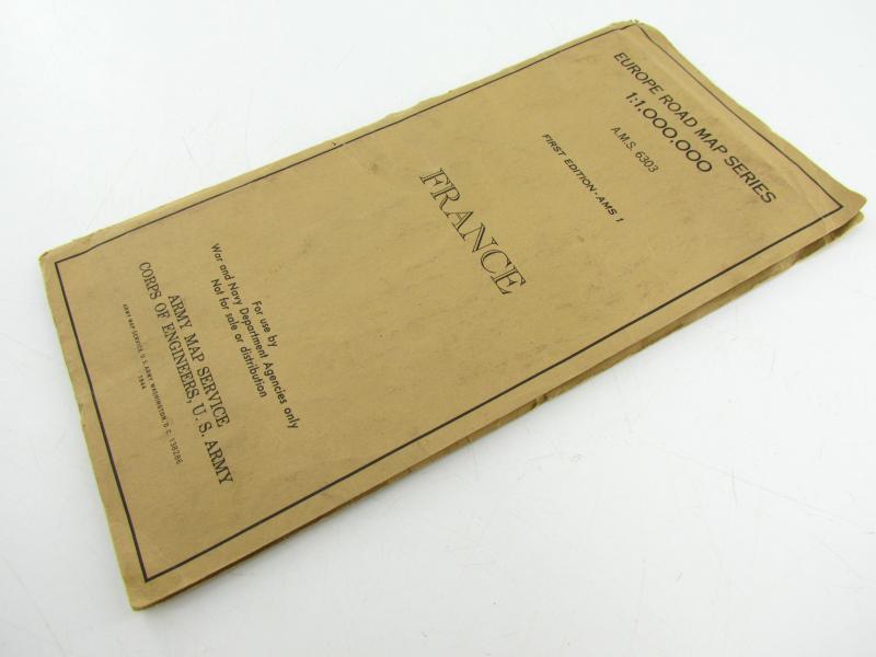 The map is 1944 dated and would have been issued to troops disembaring for the European Theatre of Operations. The map compromises a fold-out, multi-color printed map with a brown stiff paper cover.