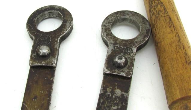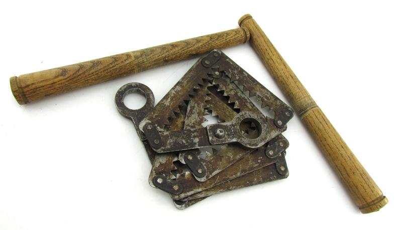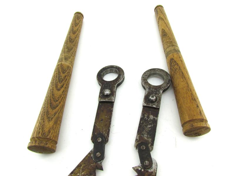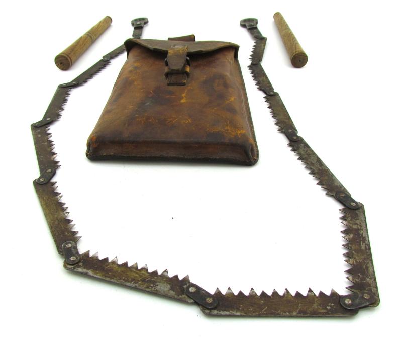 Rare complete set of the Dutch folding saw with the wooden handles in the original case. The case was made in 1934 at the Artillery establishments.