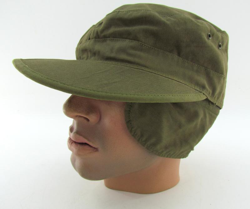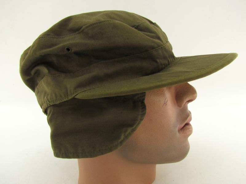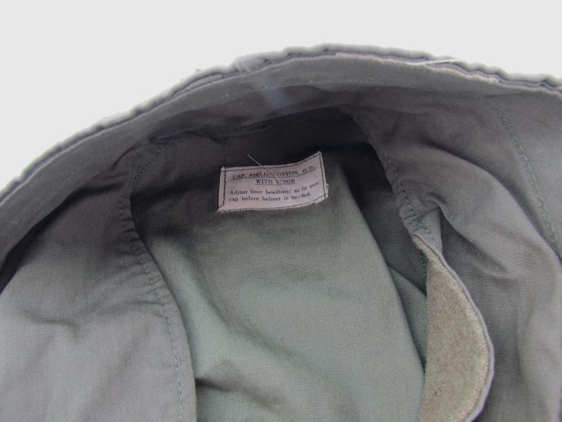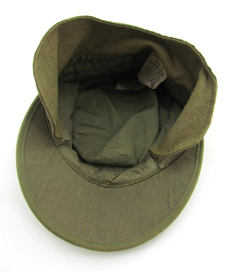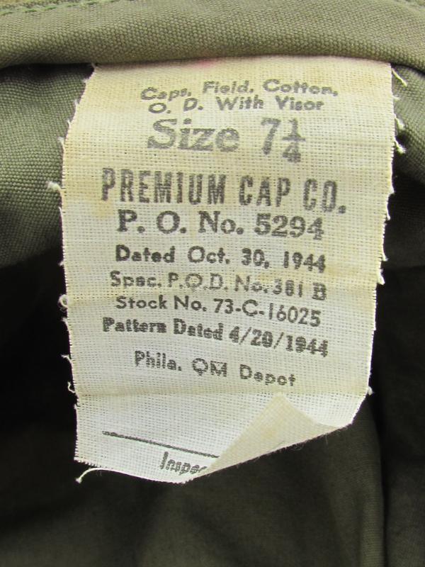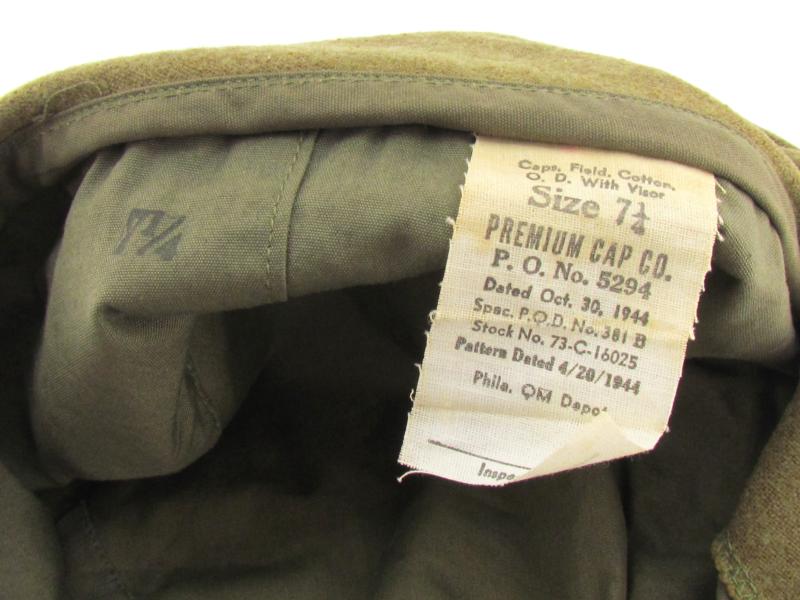 FIELD CAP 1944 EAR FLAPS. Field cap with visor, Dated 1944 with ear protection. Pretty hard to find in this excellent condition with little use and the nice light OD color