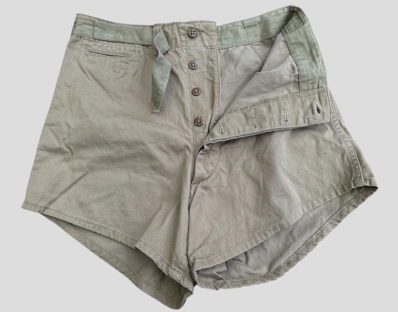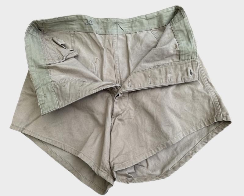 An original pair of United States military sports shorts There is a tag in the rear pocket but it has almost completely faded away. The condition is good with small signs of use, fading and little staining.