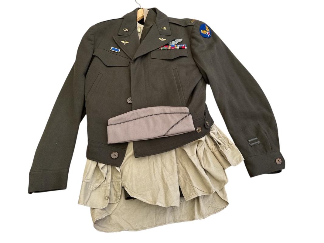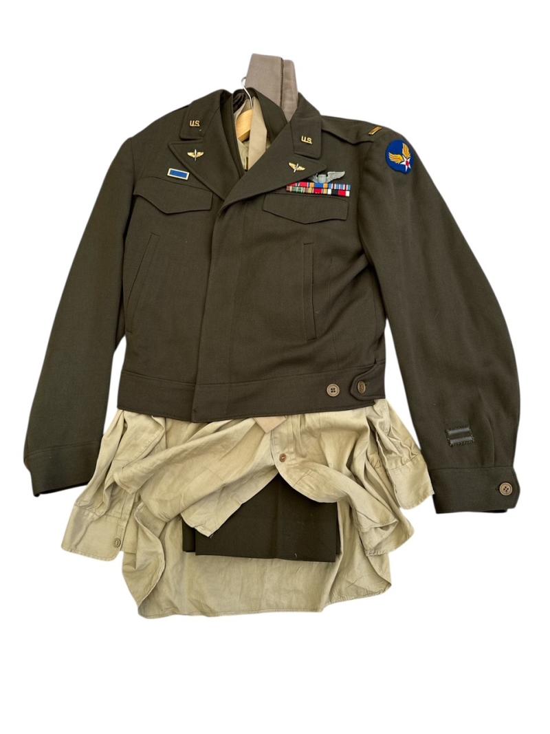 A very nice complete set for a US Air Force officer. B14 jacket with all insignia on it and also the matching Garrison Cap, shirt, tie, pants with belt, all in very good condition