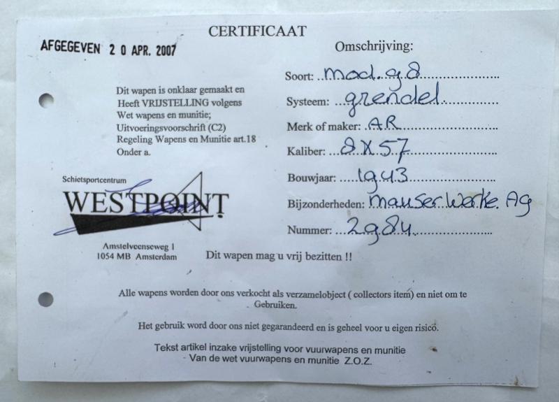Nummergelijke K98 - ar43 met ZF41 Rail....oud NL onklaar !!