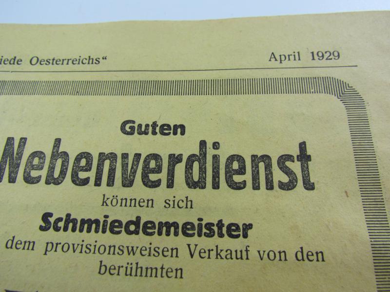 2x newspapers : Bundes Fachblatt der schmiede 1929. Nice for a period civilian display.