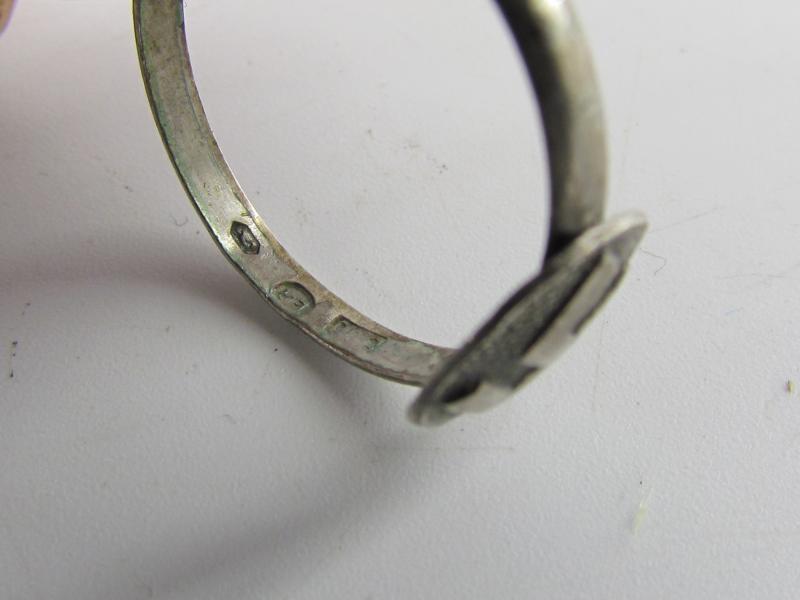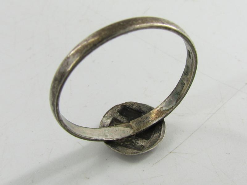 Very fine silver ring for NSDAP member. Raised swastika to front. Beautiful period ( privately ) made ring. Marked 900 ( Silver )