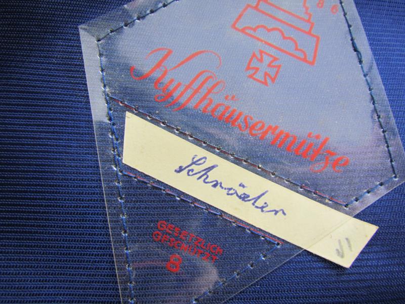 The cap is also marked with the insignia of the Kyffhäuserbund which is used after the war. And is similary marked on the inside. Also with gesetzlich geschutzt, which was the trade mark protection also used befor the war.