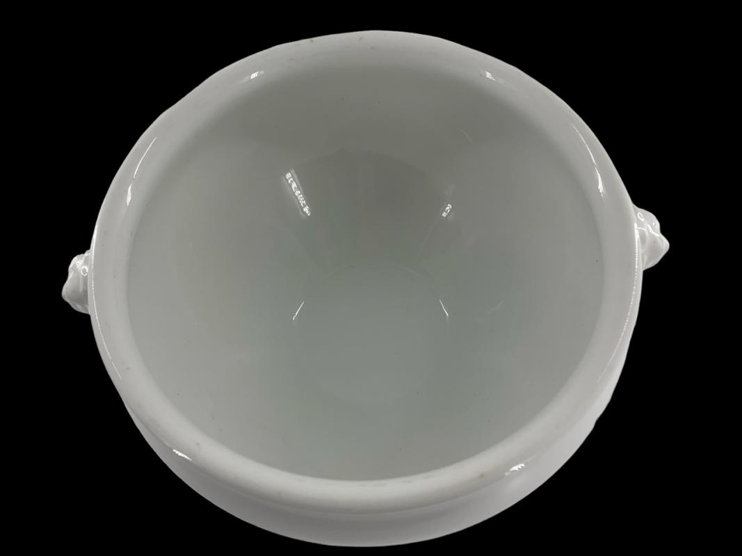 Beautiful bowl with a diameter of 24 cm and approx. 17 cm high with handles in the shape of lion heads with Fl.U.V. (Flieger Unterkunft Verwaltung) and the Luftwaffe eagle with swastika, underneath the brand Bavaria 1939
