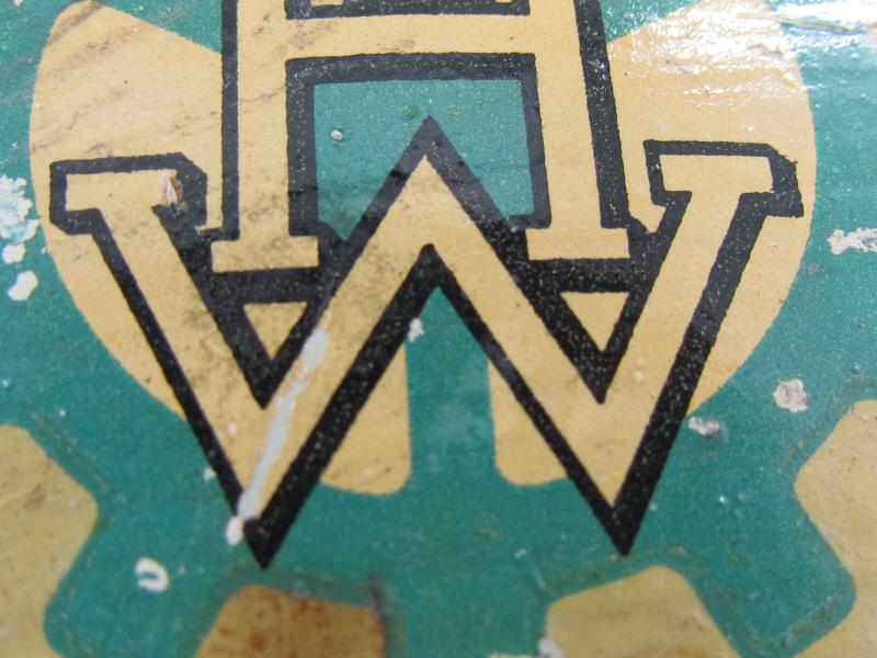 an original air raid helmet from the time of World War II, this example was worn by the THW after the war and provided with a corresponding emblem and rank insignia.