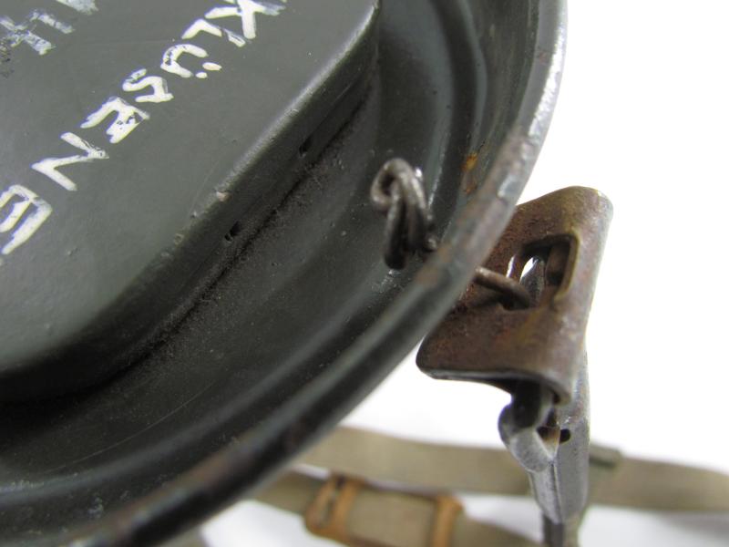 The canister has a wartime repair on the top