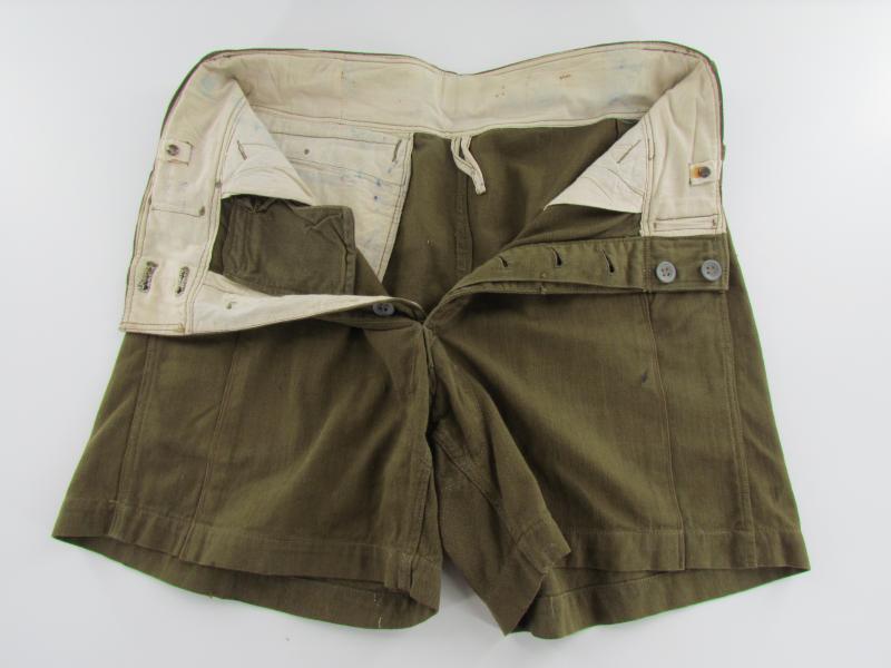 tropical troop shorts, made in the typical cotton fabric. Internally marked with sizes and manufacturer but hard to read