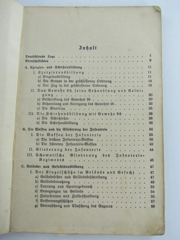 The booklet shows overall minor signs of use. Printed in 1936. Lots of interesting training info, photos and illustrations (89). Its complete and has 127 pages in used but good condition