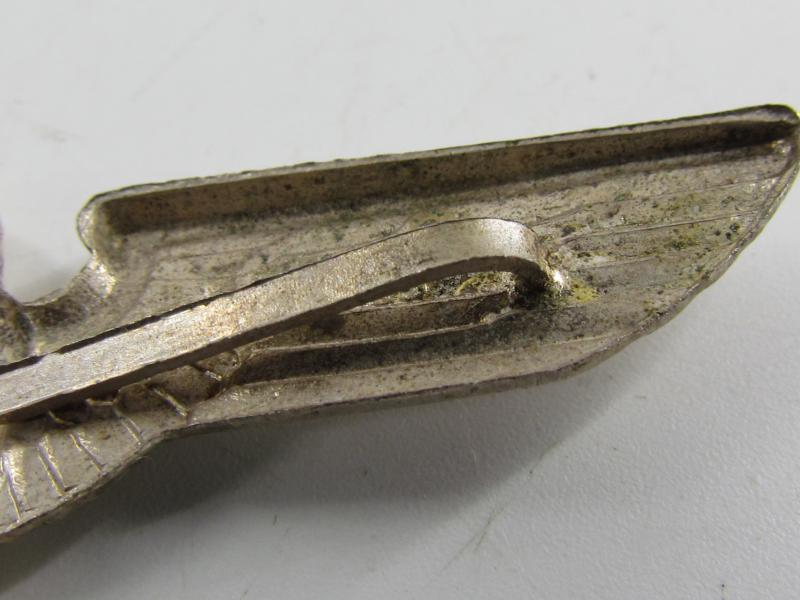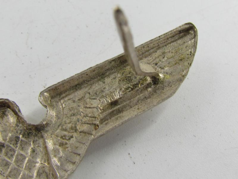 A Third Reich German Political Cap Eagle, constructed in aluminum; with rzm stamp and marked RZM/20 which indicates maker Gustav Emil Ficker