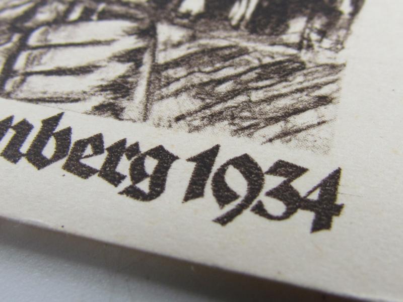 German historical postal card: The 6th party Congress of the NSDAP in Nuremberg in 1934, SS standard bearer in a steel helmet In used ( posted ) but very good condition