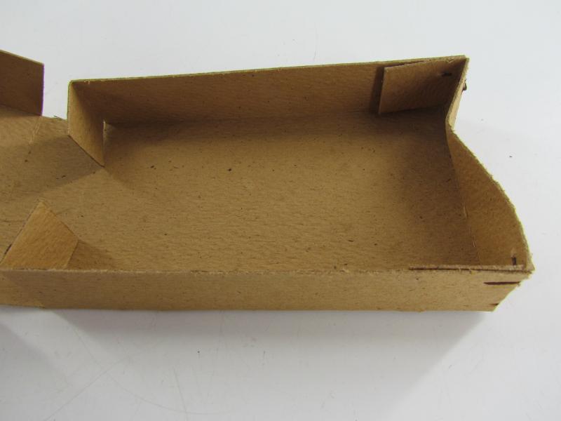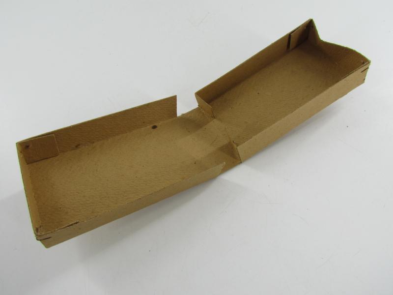 Small German feldpost carton box The empty box comes in a never used condition and is very nice for a display. About 13,5 x 7,5 x 2,5 cm Several on stock