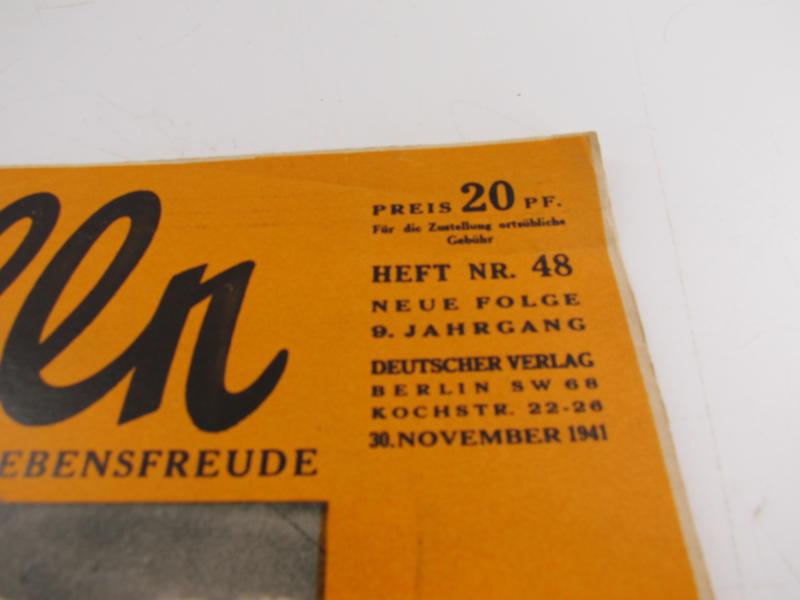 a nice period issue of the magazine Koralle. with interesting period photos and articles inside. Dated 30 November 1941 in used but good condition