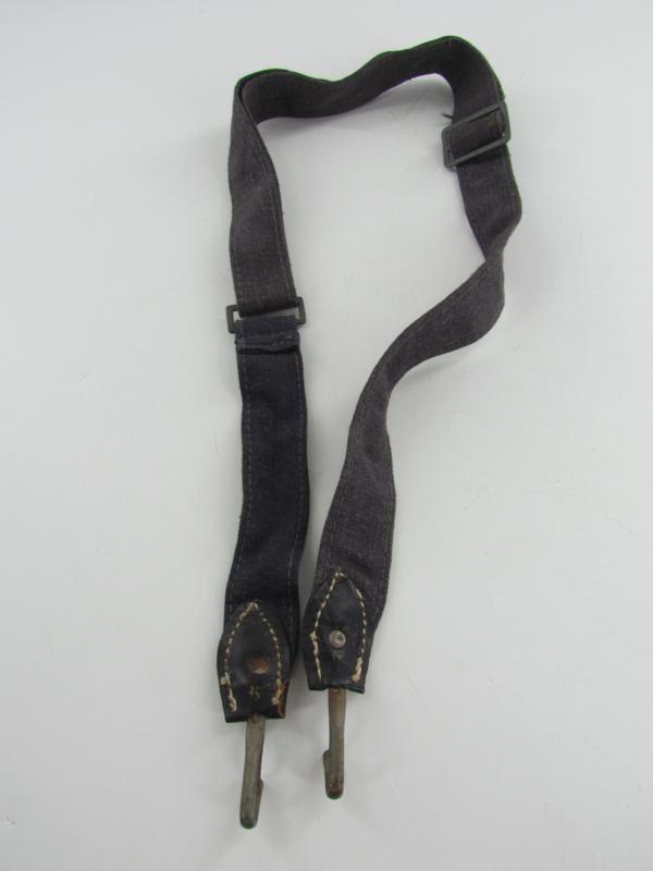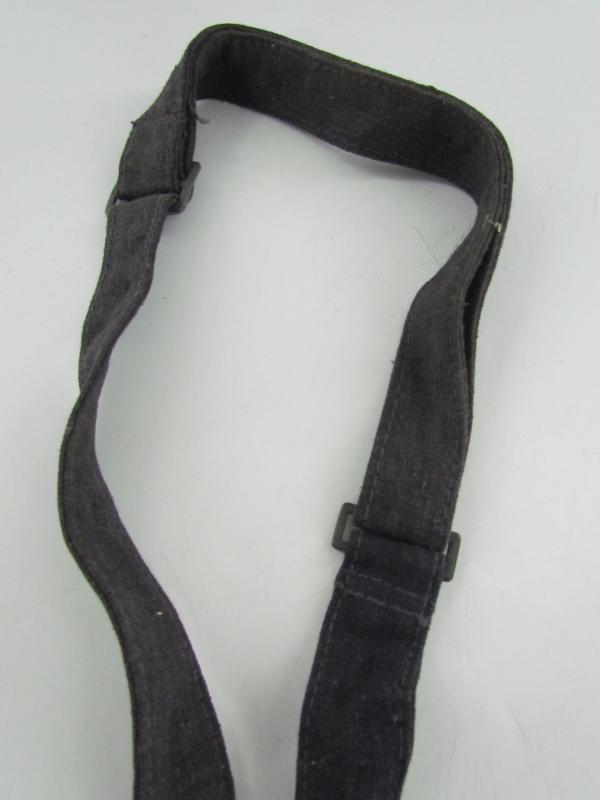 In a used but very good condition a Luftwaffe breadbag strap Nice dark blue/grey canvas construction breadbag strap with leather reinforced steel friction clips to either end