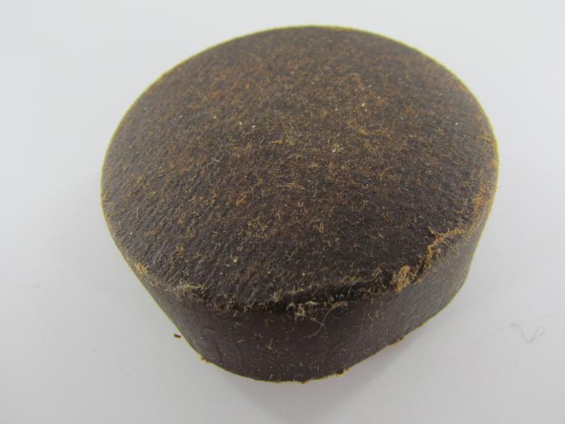The Hindenburg light consists of greased cardboard, filled with wax and a wide wick that you can pull out a bit. When burning, the metal in the wax heats up, the wax softens due to the heat and burns with a bright flame. It was the light source for the German soldiers in World War II, also as an accessory in the unit lantern box. Original and unused.