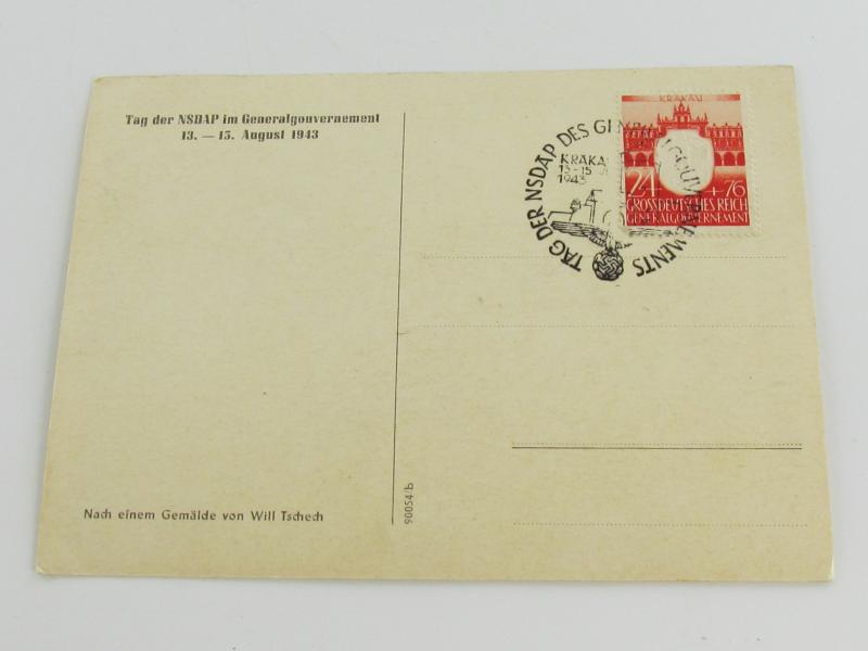 Very nice Tag der NSDAP postcard in very good condition. The postcard shows overall minor signs of wear. Stamps on the back.