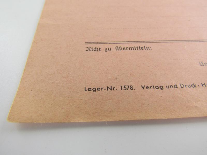 The title says it all, a secret document used by the German army during World War II. The document has not yet been completed. A beautiful and unique piece for the collector!