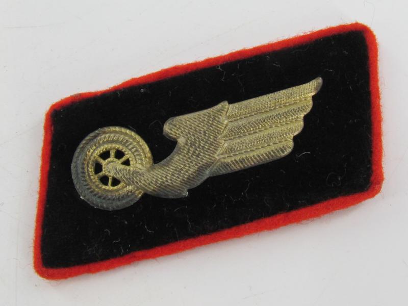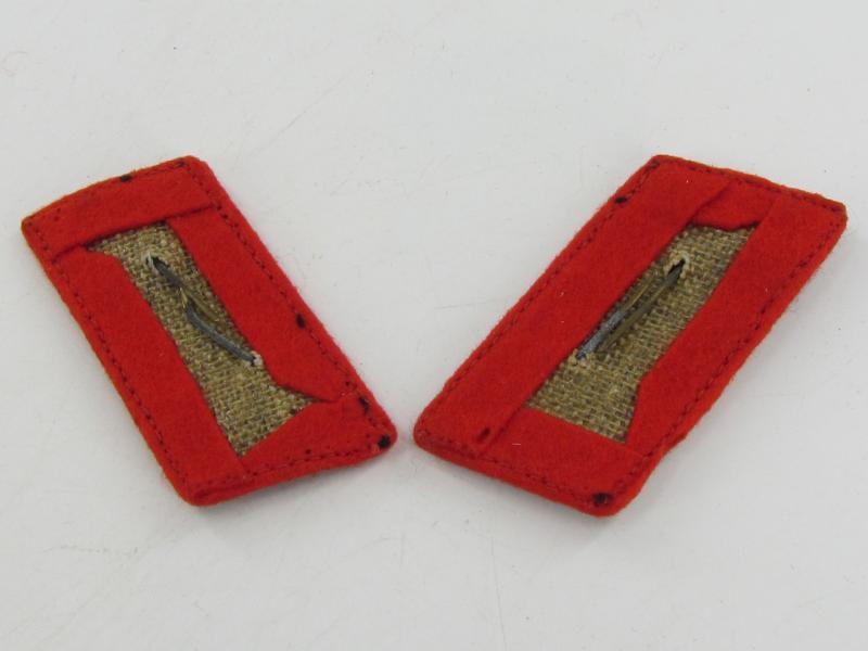 First pattern Reichsbahn collar tabs as introduced circa 1933. Elongated rectangular black velvet collar tabs, with red wool piping about 5,5cm x 3cm in a very good condition