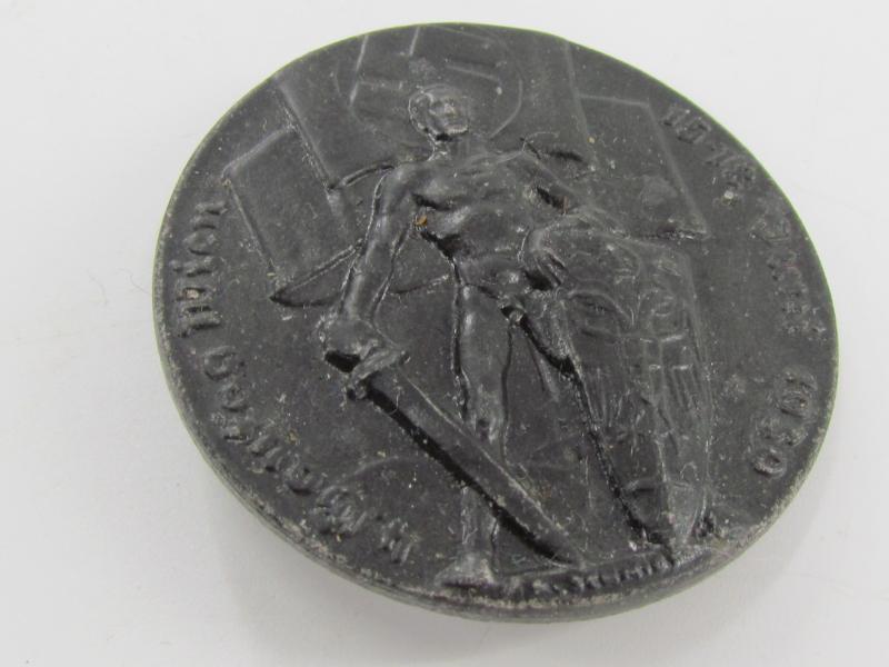 A 1939 NSDAP 4. Gautag Wien badge (15-18.6.1939); silvered zink; vertical pinback; maker marked Friedrich Ort Wien 56 Diameter about 4,2 cm in used but good condition...