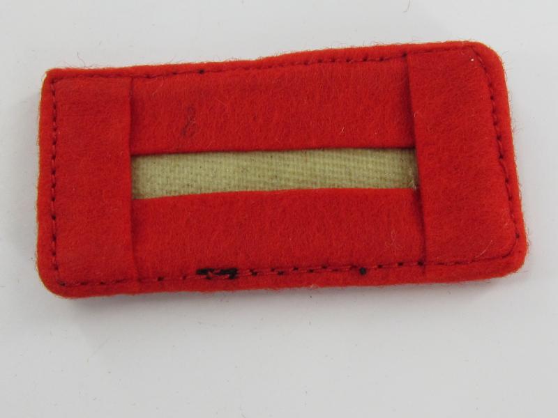 1x Reichsbahn collar tab as introduced circa 1933. Elongated rectangular black velvet collar tabs, with red wool piping about 6 cm x 3 cm in a very good condition