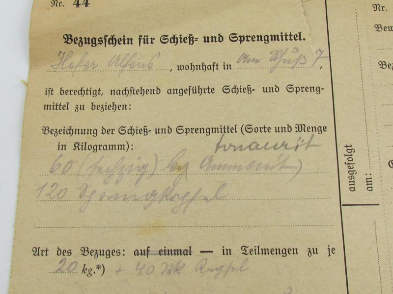 Purchase certificate for shooting supplies and explosives nice wehrmacht stamp on it