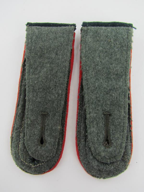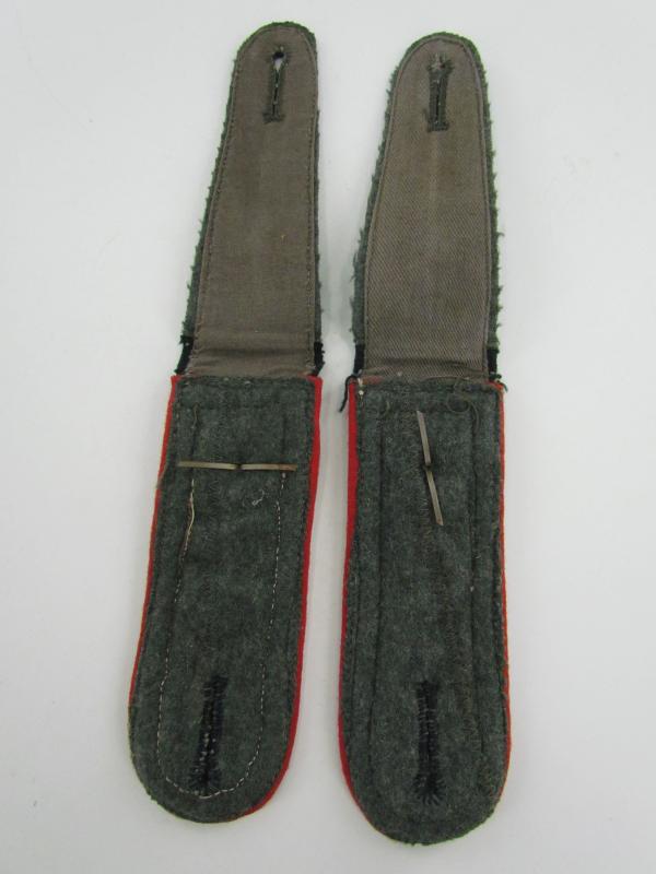 Matching dark bottle green M36 pattern shoulder boards with red piping for a member of the army artillery. Rank: Feldwebel. Length about 12,5 cm in a very good condition
