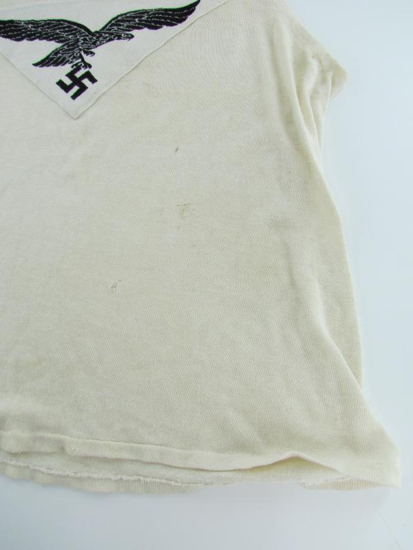 Luftwaffe sport shirt in worn condition. Comes with its original Luftwaffe chest eagle zig-zag stiched on the front of the shirt Some traces of wear and smaal holes See pictures !!