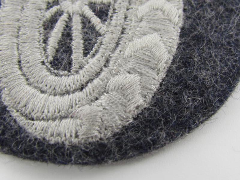 The patch shows a detailed 'winged wheel' and is executed in silver-greyish-coloured linnen on a typical LW-type- (and smooth-woolen-based) background