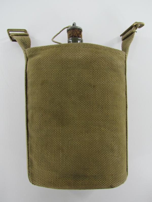 British WW2 Canteen Nice early style British WW2 canteen with nice Blancoed webbing cover in used but very good condition. Great to complete British WW2 equipment!