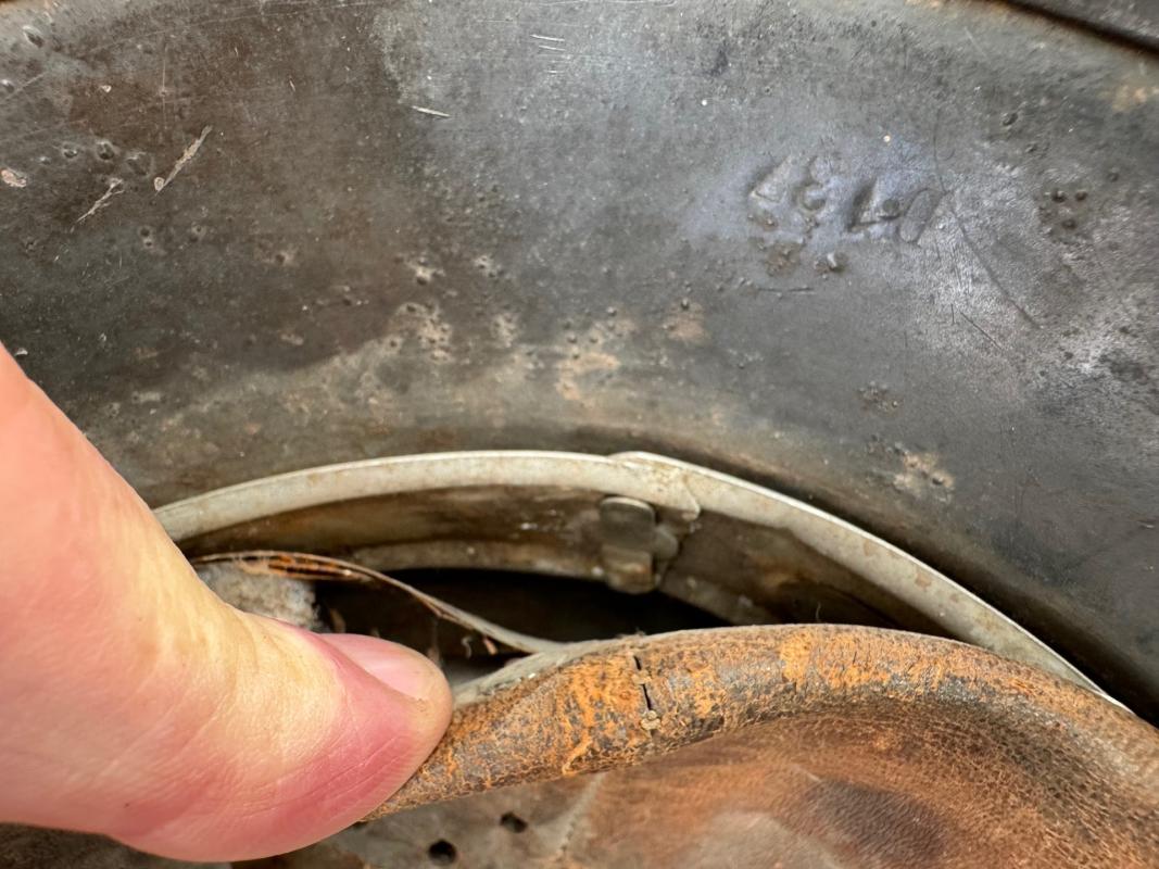 Aluminum liner and also still has his original chin strap which is also marked and dated 1941