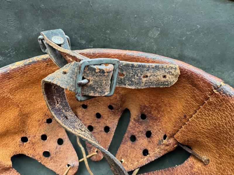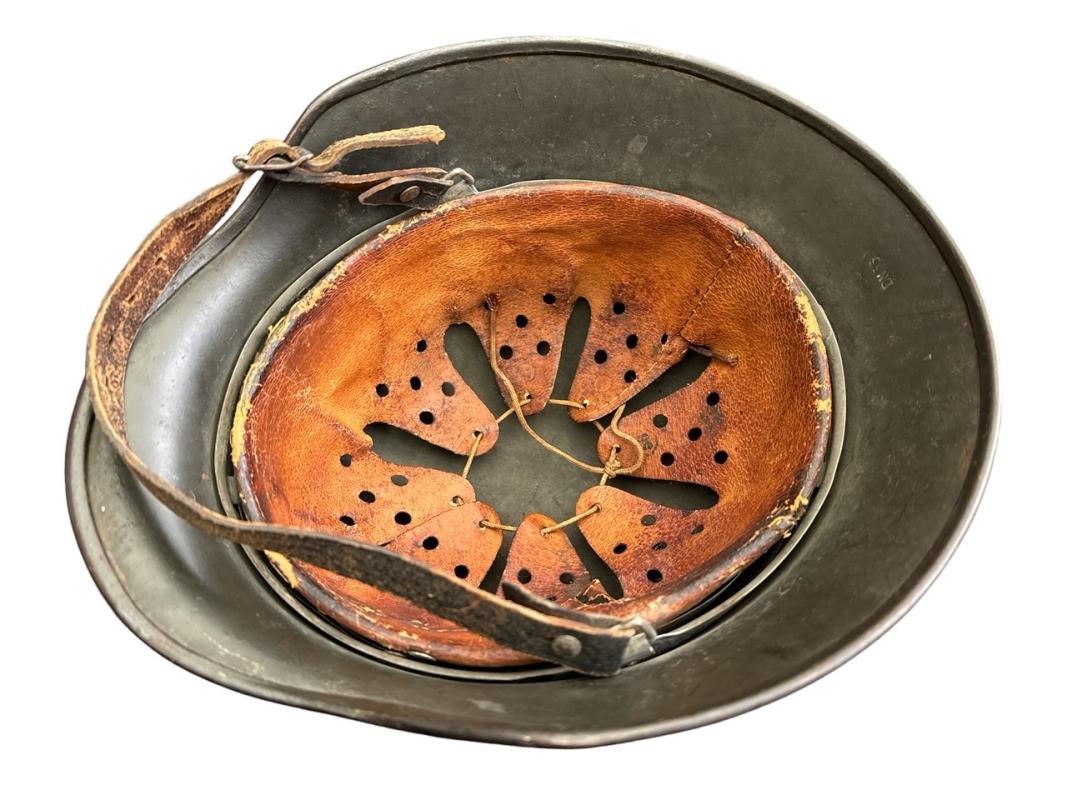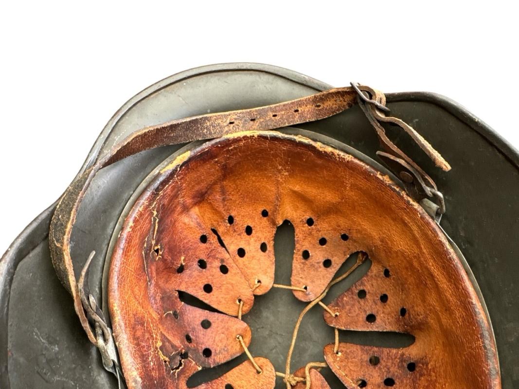 The interior of the helmet is a steel M31 leather liner, which is size '56' marked