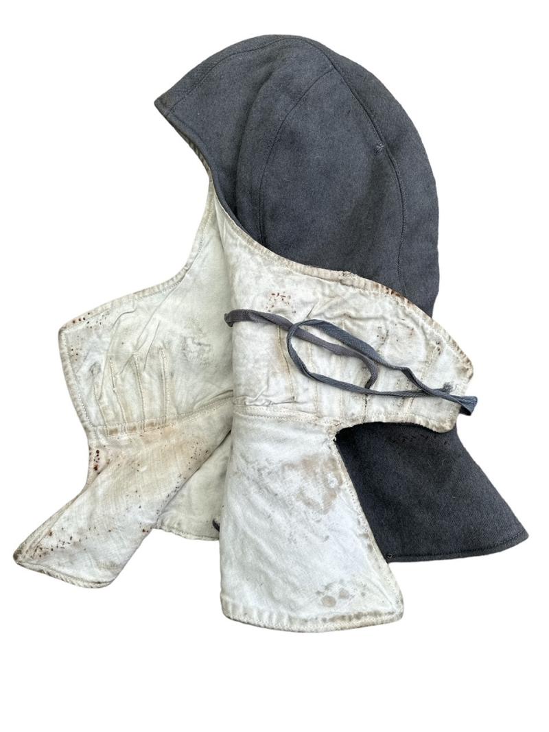 A beautiful lightly used example of a first model Luftwaffe winter hood ( Kopfhaube ) in blue wool.. A great and rare early war hood in good condition!