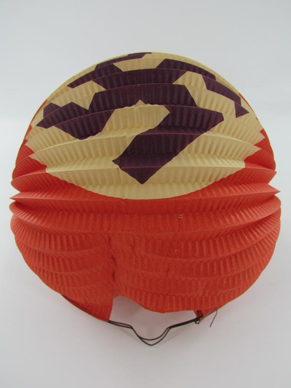 These paper lanterns were carried or hung on special occasions like the Führer's Birthday or Political events. The lantern is made out of paper, it's a round shape. There is a candle holders mounted to the inside bottom.
