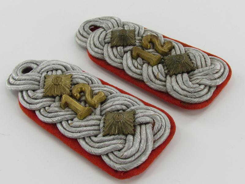 Very nice high ranking pair of red piped ‘Artillerie’ shoulder boards for a Colonel (Oberst) in Luftwaffe Flak Regiment 12 Length about 10,5 cm in a very good condition