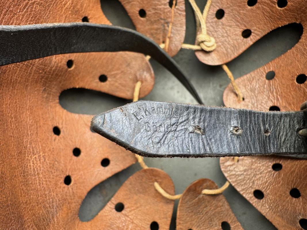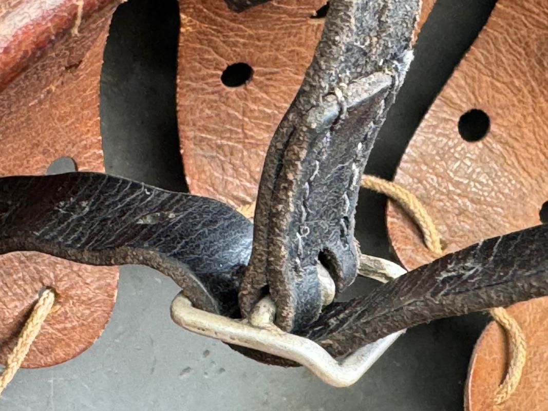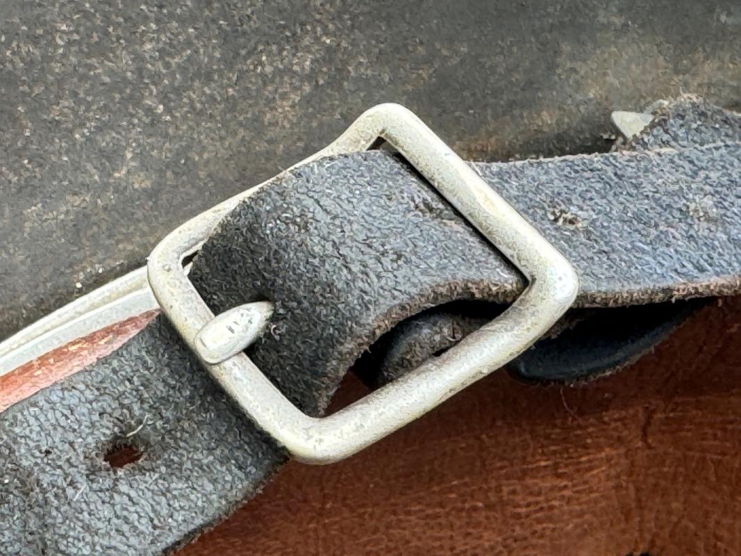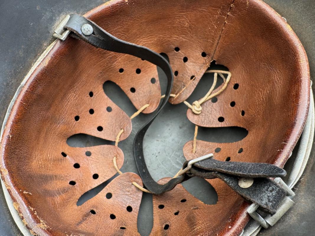 The helmet still has its matching aluminum reinforced liner. The leather is still soft and supple.