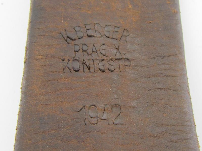 Early Police (Polizei) belt buckle executed in aluminum is used condition no markings visible Belt is maker marked and dated 1942 Length about 97cm