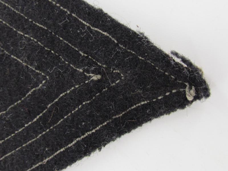 Waffen-SS arm-chevron intended for a 'Rottenführer', this is the tropical version. The chevron is executed in black wool having the yellow-coloured, sub-dued, NCO braid with two black lines.