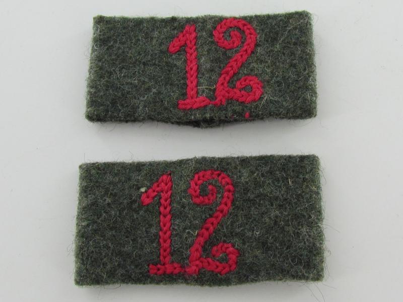 a very nice slip on cyphers set for shoulder boards from Panzerabwehr-Abteilung 12 or later Panzerjäger-Abteilung 12 part of the 12th Infantry Division several on stock