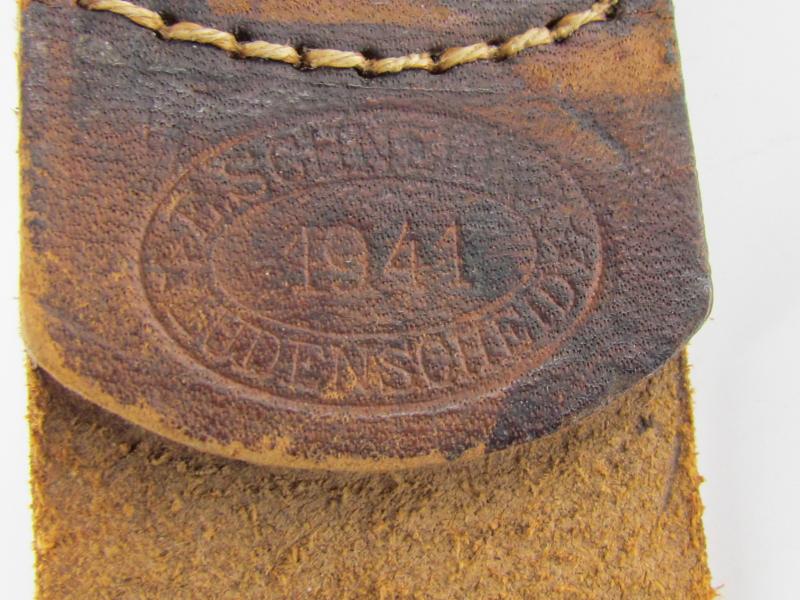 Maker marked on the leather tab by E. Schneider, Lüdenscheid, 1941. The buckle itself is also marked with ESL 41