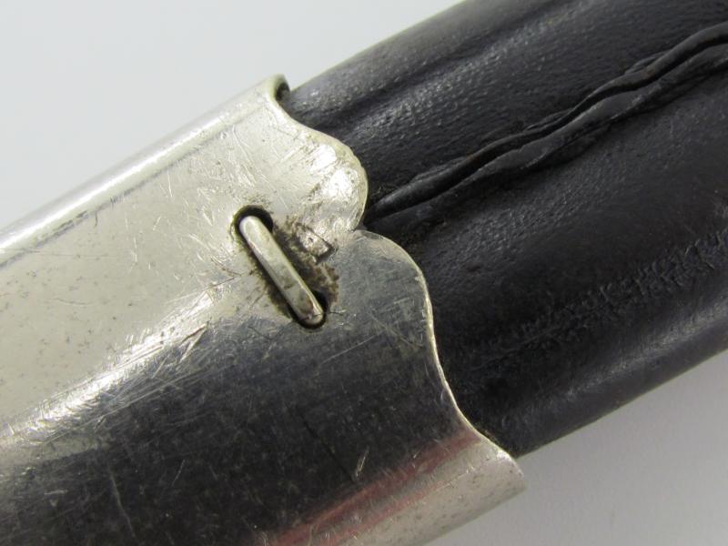 The scabbard is leather-covered, with nickel fittings