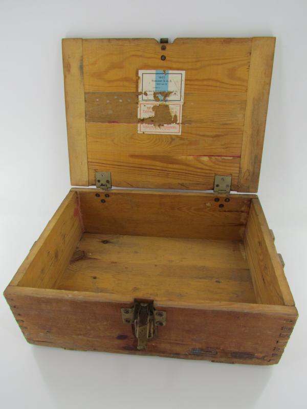 Very nice wooden Wehrmacht ammunition case for “80 pieces 2cm Sprengranat-Patronen, Üb.”