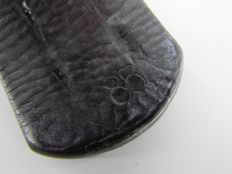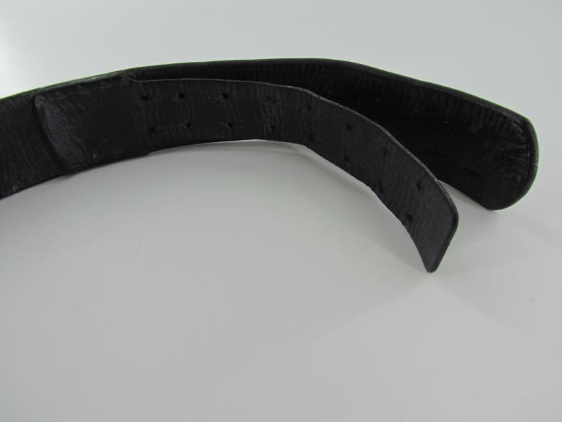 A nice standard issue leather equipment belt in used but good condition. The belt is 85 cm long No further markings visible only O&C on the hook