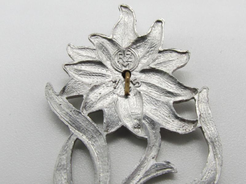 original aluminum made ‘political’ edelweiss either used for SA or Hitlerjugend units stationed in the Alps. Maker marked by RZM M1/155 (Schwertner & Cie, Eggenberg)